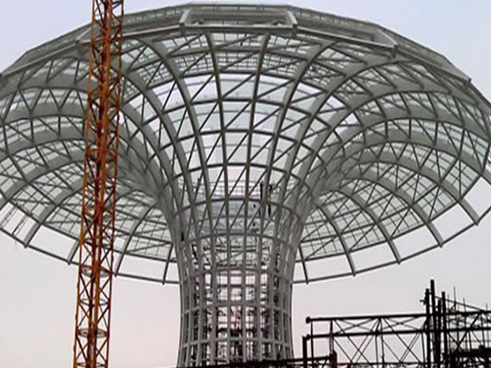二、球形网架结构因其结构新颖,受力合理,自重轻、用钢量低等优点。如大型体育场馆球形大安螺栓球网架、公共场馆球形网架、电厂大安螺栓球网架、水泥工业球形网架、仓储物流球形网架、大安干煤棚工业球形网架、大安收费站大安加油站球形网架、展览中心、影剧院、商场、航站楼、候车厅、工厂大安车间、仓库、电视塔等球形螺栓球节点网架。国内球形网架结构主要分为:大安焊接球节点网架及螺栓球节点网架两种。螺栓球节点网架其构件工厂内加工量较大,现场安装便捷,适用于现场工期紧,大安施工条件、用电量受制约,网架形状复杂、大安杆件定位困难的异形结构。螺栓球节点球形网架系统基本由大安杆件、螺栓球、支撑支座等组成。按照节点形式可分为交叉大安桁架体系、四角锥体系、三角锥体系等。支撑方式多为固定支座支撑。对于大面积、大跨度及有特殊受力或伸缩要求的网架结构可采用橡胶支座、滑移支座、球铰支座等支撑形式,以满足结构自身的受力稳定、均衡,便于内力释放等设计要求。